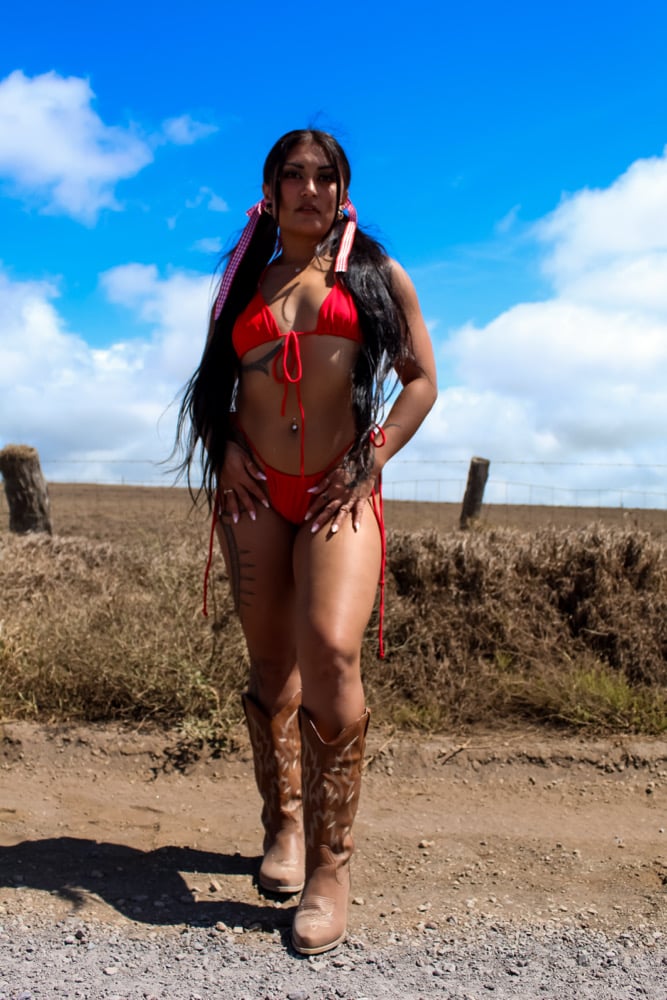 2 piece adjustable triangle bikini. Wear plain or wrap the extra long bottom straps around your body for an edgy look.