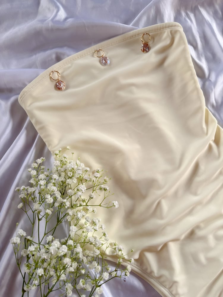 Strapless 1 pc with shell charms & cheeky coverage